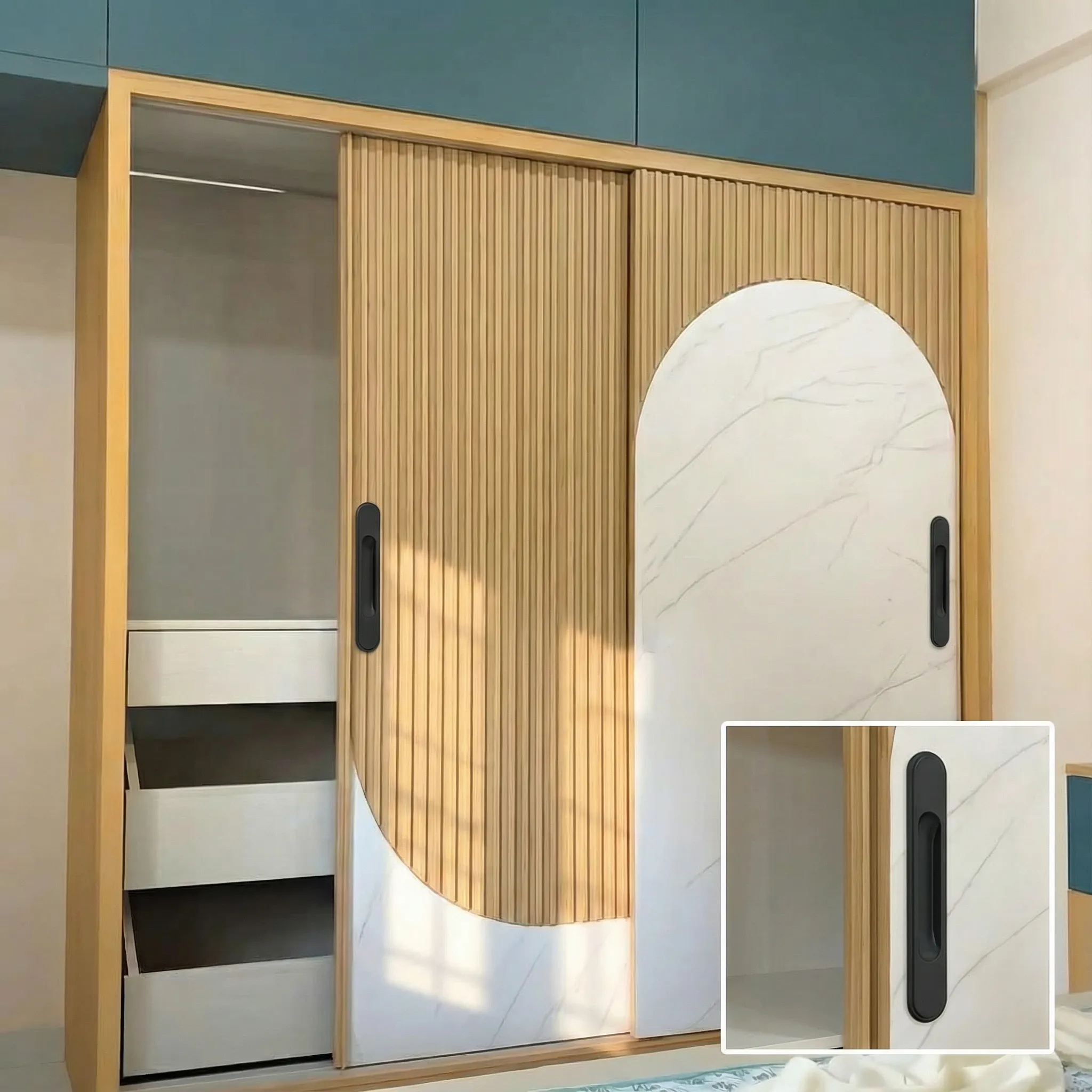 As a best hardware fitting manufacturer, we produce concealed handles that meet today’s architectural and interior design standards. Supplied by a best door handle supplier, this model is ideal for residential projects, modular furniture, offices, and premium commercial spaces where modern sliding hardware is required.