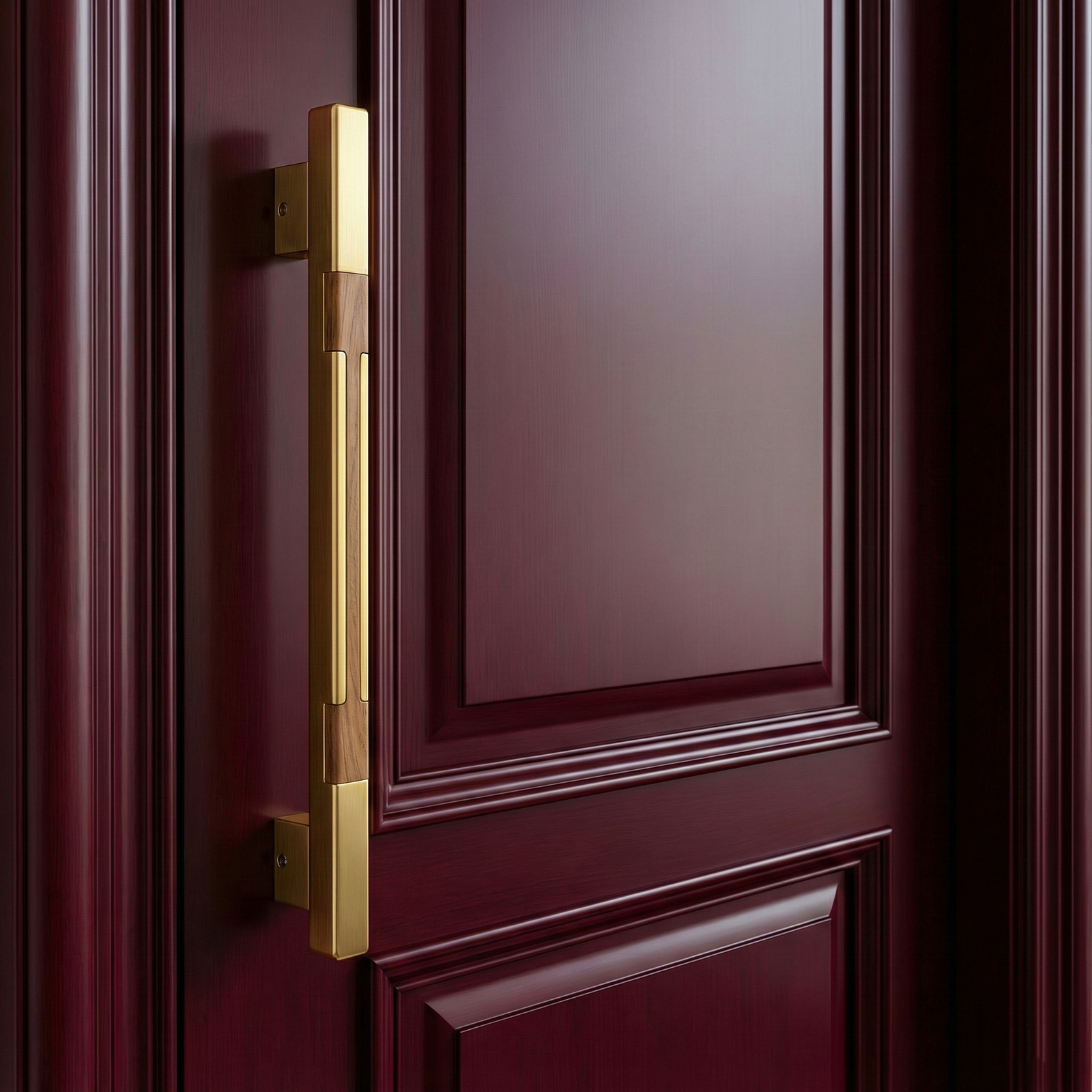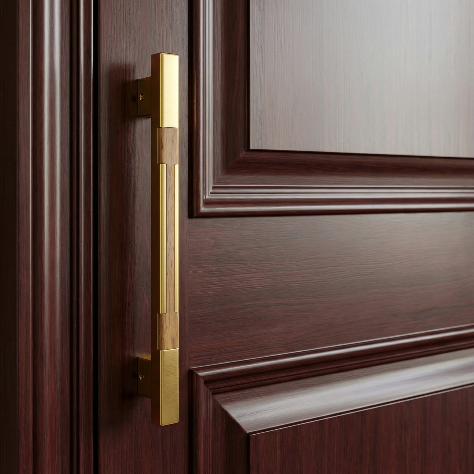 Unique aluminum door handle with wooden strip design